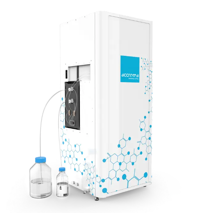 Eliminate variability and safety risks by automating your buffer and solvent preparation. The accroma® eluentPrep System ensures that your mobile phases are prepared exactly according to recipe, on time, every time—without a single drop spilled.